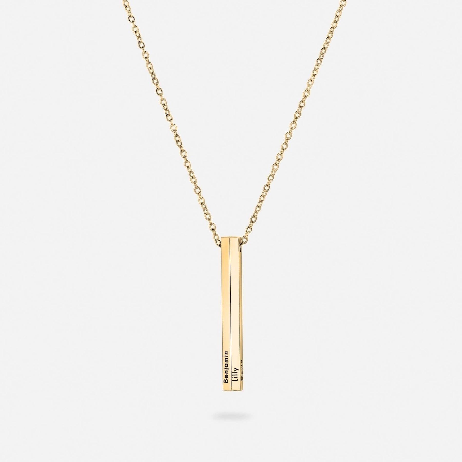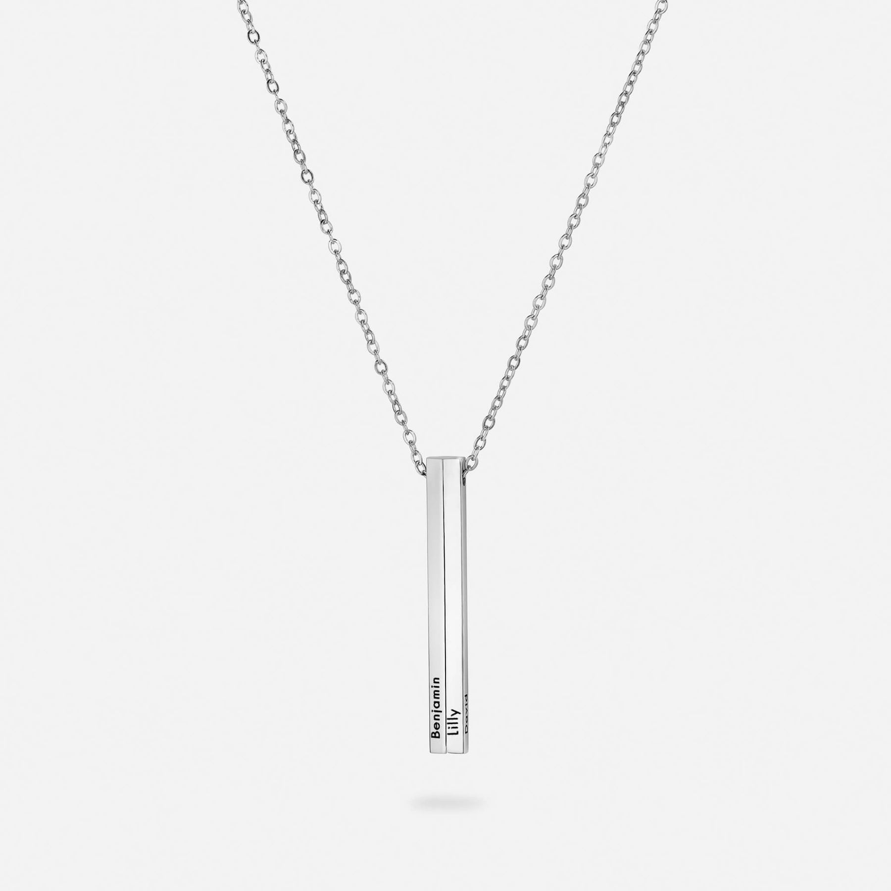 Che sia incisa con i nomi dei tuoi cari o con una parola significativa, questa collana ti permette di tenere vicino al cuore ciò che conta davvero.